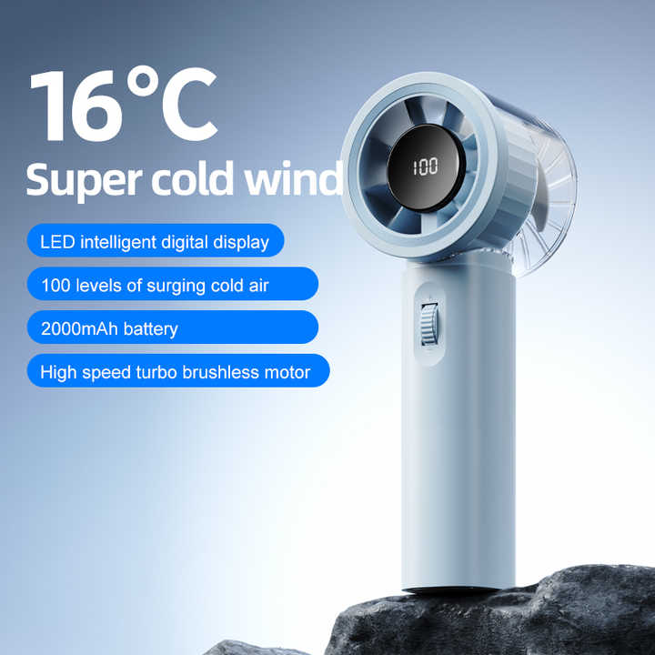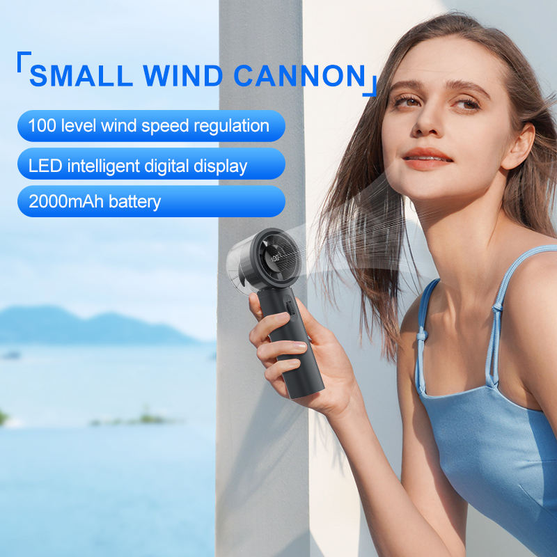 Ventilateur de poche portable à moteur sans balais avec batterie KC rechargeable, affichage numérique, conception de rouleau de refroidissement, bouton