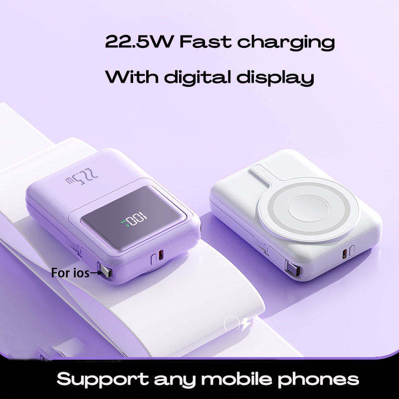 Batterie externe magnétique ultra-mince sans fil PD15 Li-Polymère Type-C portable avec 2 câbles intégrés 5000 mAh 10000 mAh pour montre