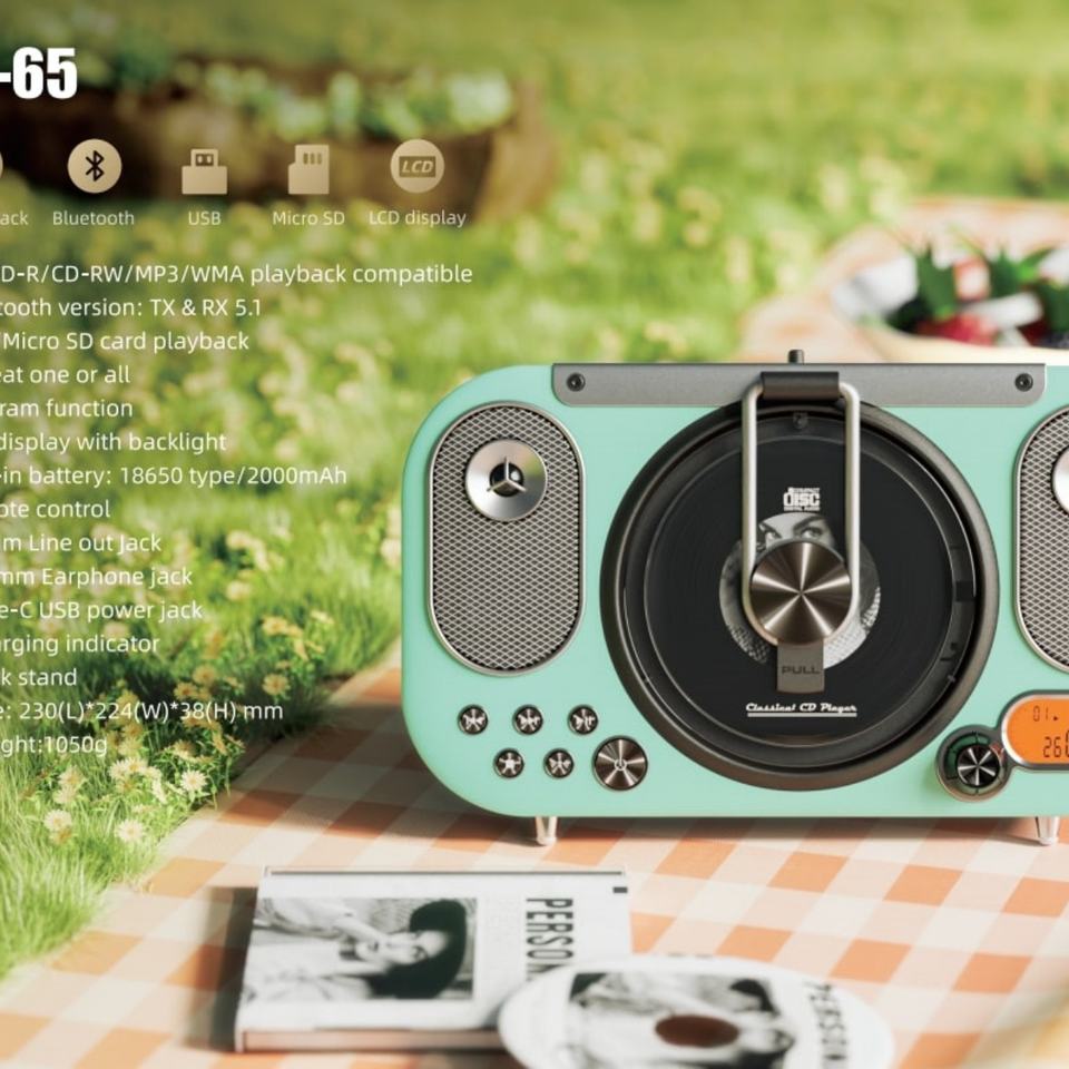 Lecteur CD portable avec 5 modes de lecture BT/USB/carte TF, écran LCD, télécommande, prise jack pour écouteurs