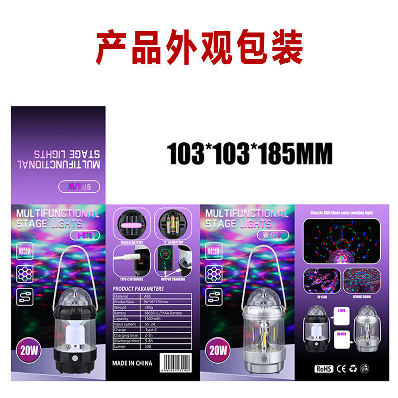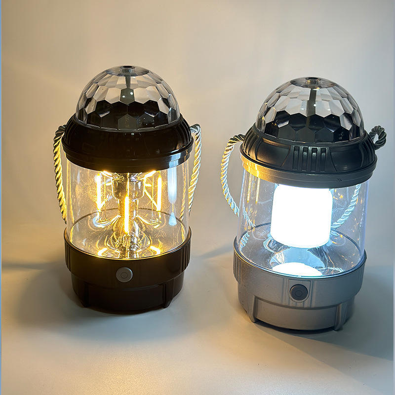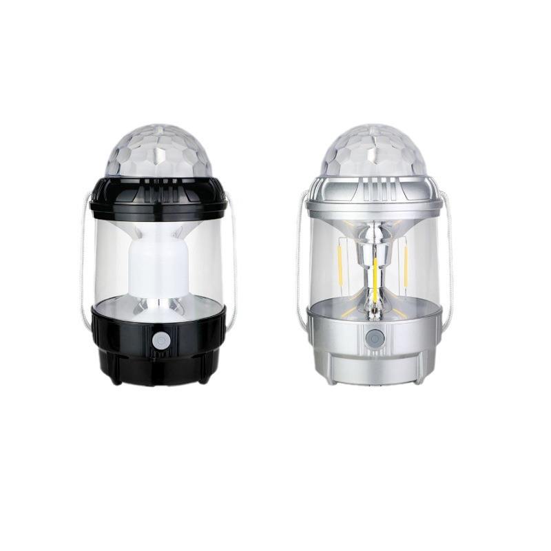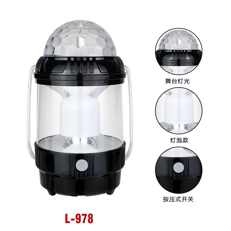 Lanterne de camping portable L978, lampe LED rechargeable avec effet boule disco rotative pour utilisation d'urgence en extérieur
