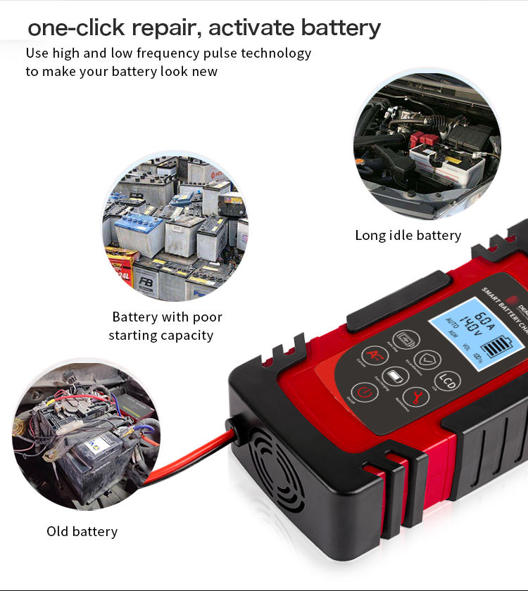 Chargeur de batterie de voiture portable 24 V 12v 40ah 60ah 80ah Batteries au plomb-acide automatiques avec prise universelle US EU UK AU JP