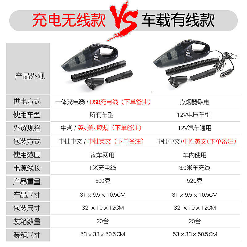 Aspirateur portable pour voiture 12V DC, humide et sec, à main, avec forte aspiration, modèle Hypa, sous marque privée, pour usage domestique et automobile