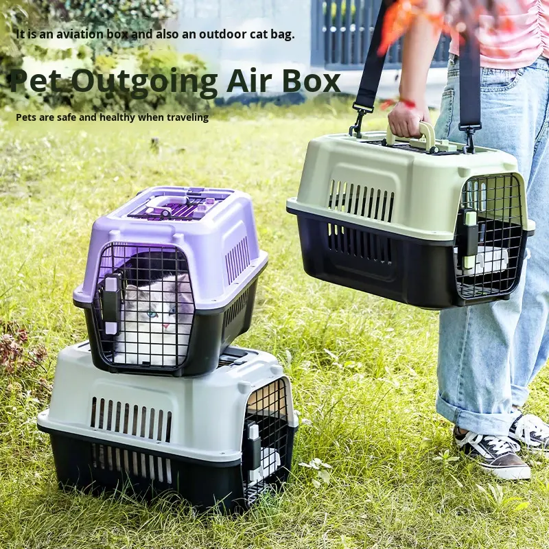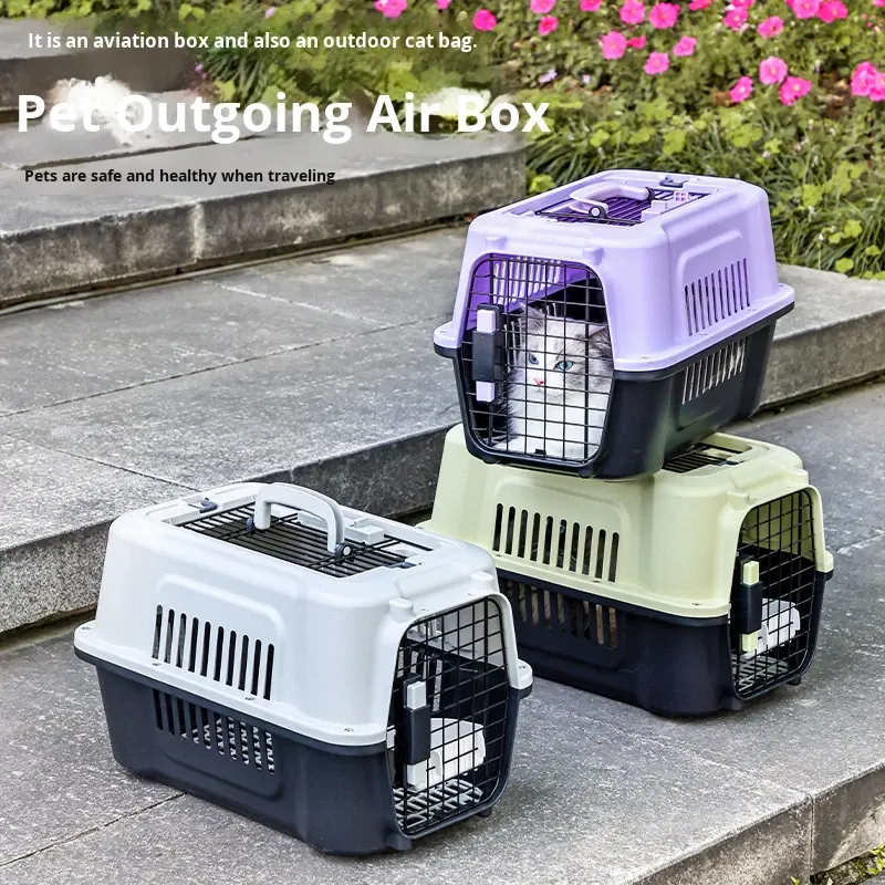Boîte de transport portable pour chat et chien avec tapis absorbant, forme rectangulaire, modèle 303tc, pour le transport en avion