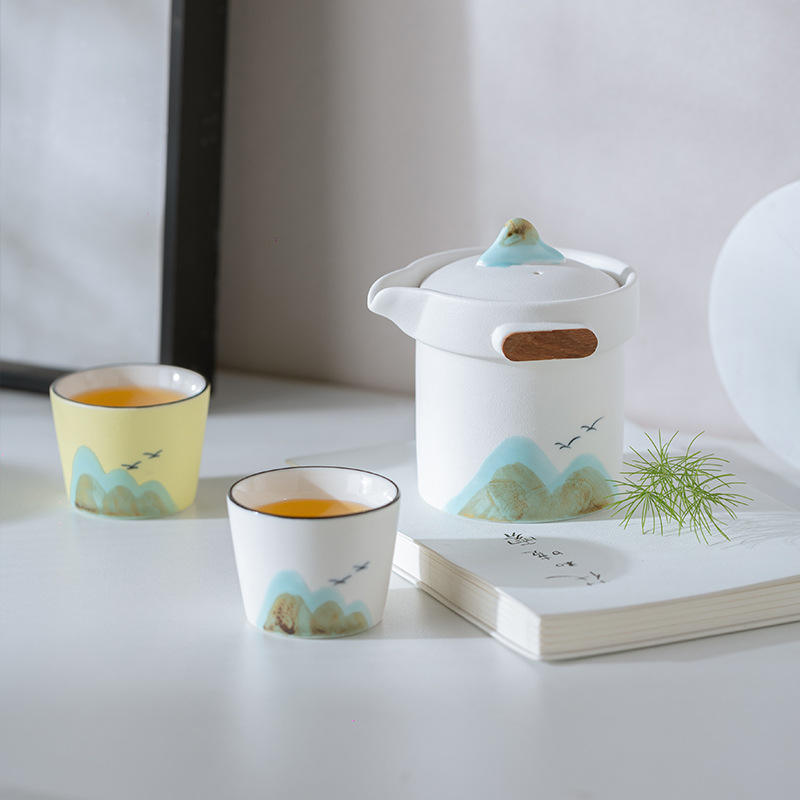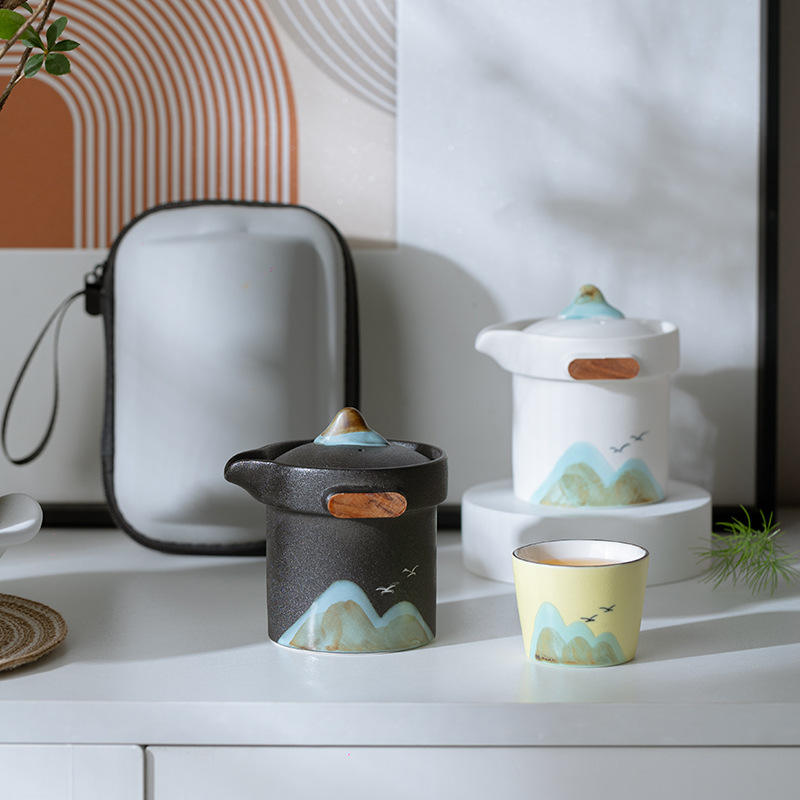 Service à thé de voyage en céramique portable, design minimaliste, théière avec tasses pour usage extérieur, origine Dehua