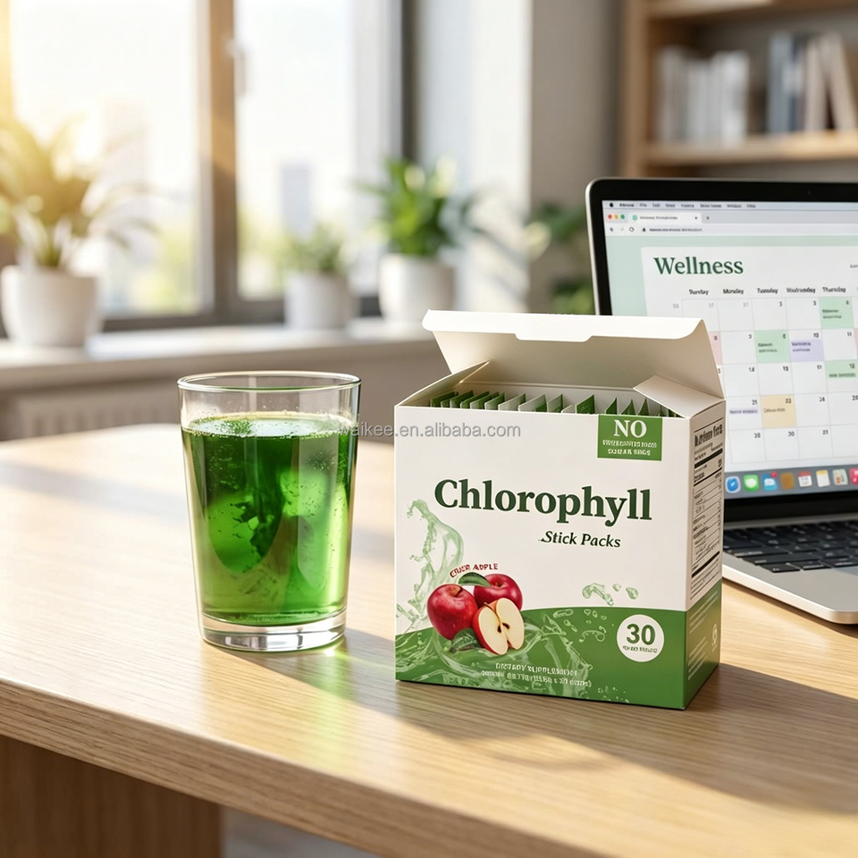 Poudre de Chlorophylle Portable en Sachet – Complément Jus Vert Sans Conservateurs Saveur Pomme – Boisson Vitalité pour Nettoyage Quotidien