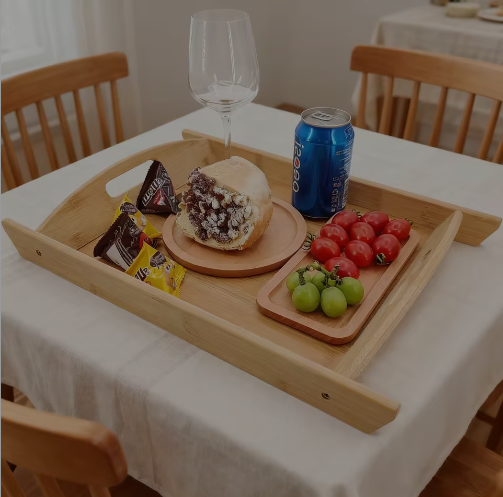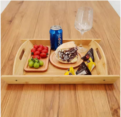 Plateau de service portable classique en laque sculptée, créatif, en bambou, durable, pour aliments et boissons, cuisine, salon, salle de bain