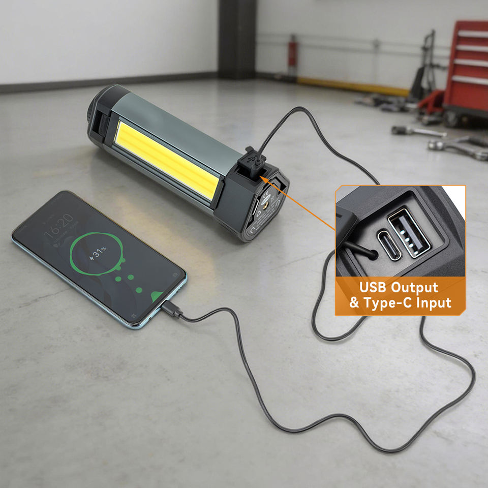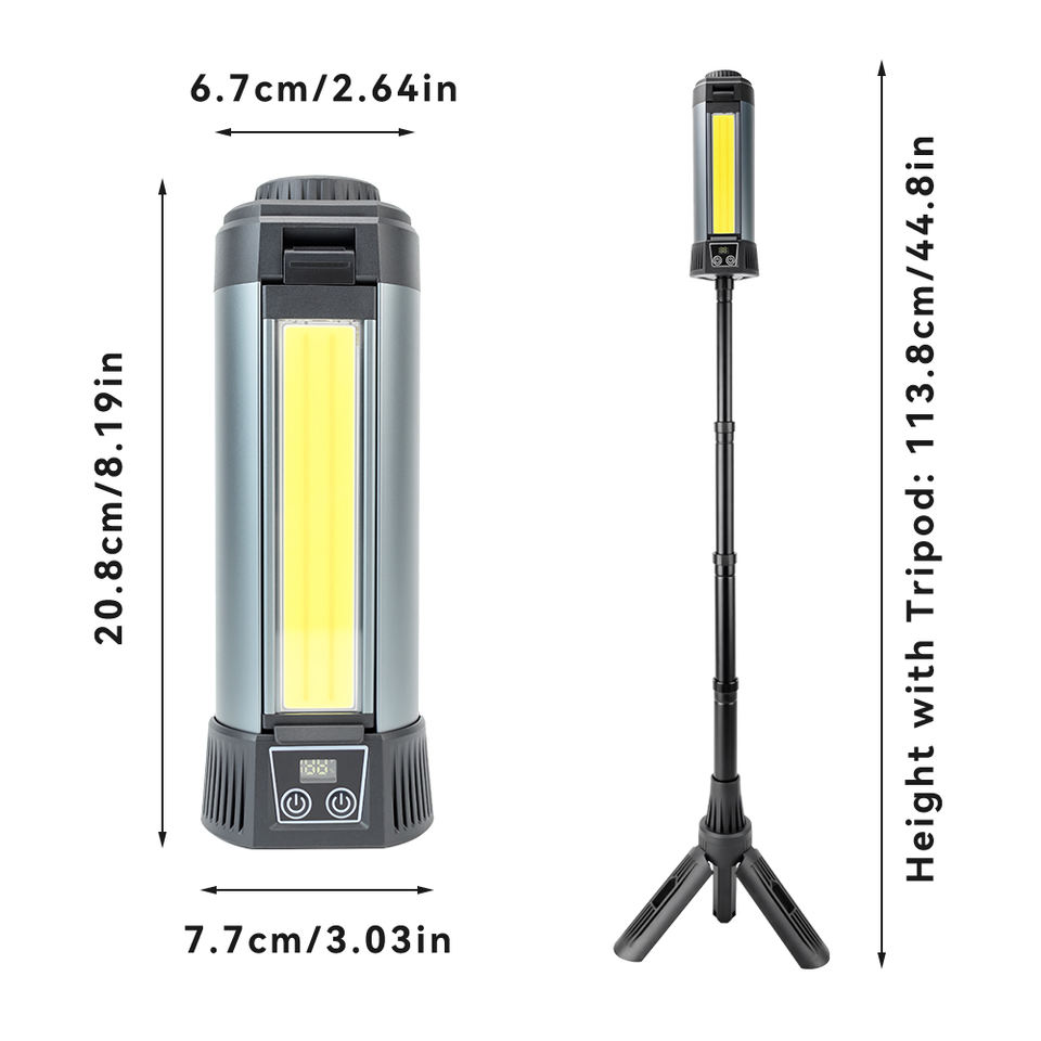 Lampe de travail portable COB LED, lumière puissante, étanche IP54, 20W, corps en aluminium, trépied, lampe de travail rechargeable pour entrepôt