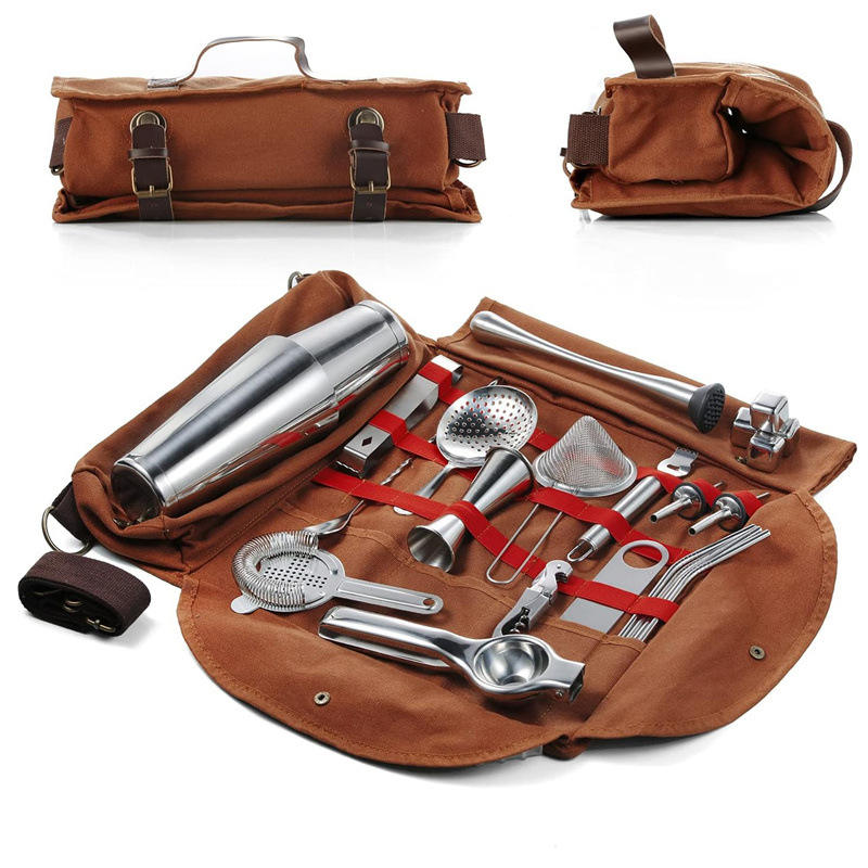 Kit à cocktails portable avec shaker, passoire et doseur pour les voyages, le camping en plein air, les pique-niques, durable, bleu café