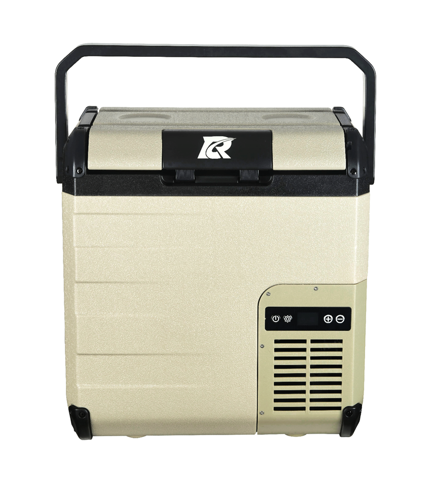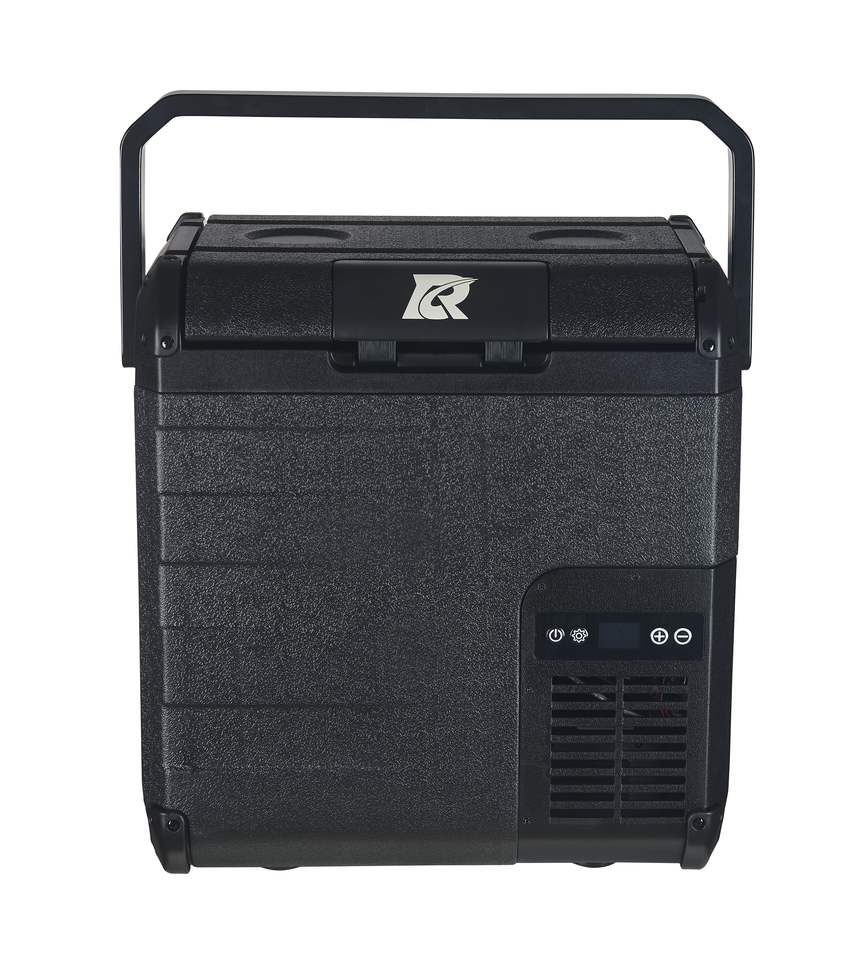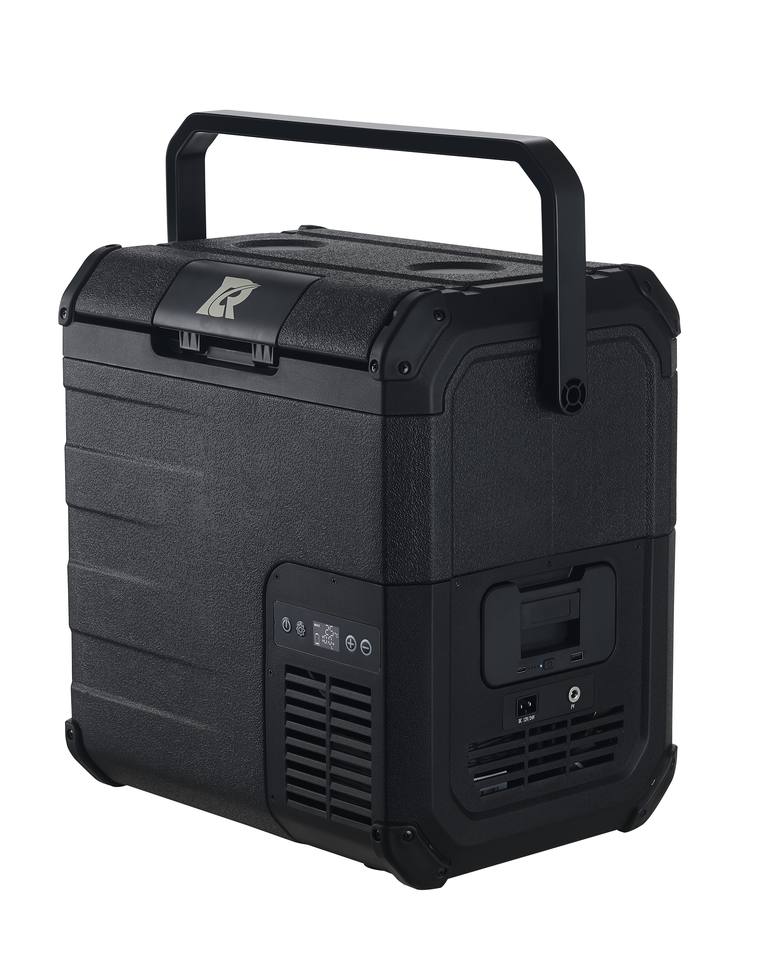 Réfrigérateur de voiture portable 18L avec système de compresseur à batterie, design extérieur, 12V/24V/220V, congélateur -20~10°C, porte en plastique