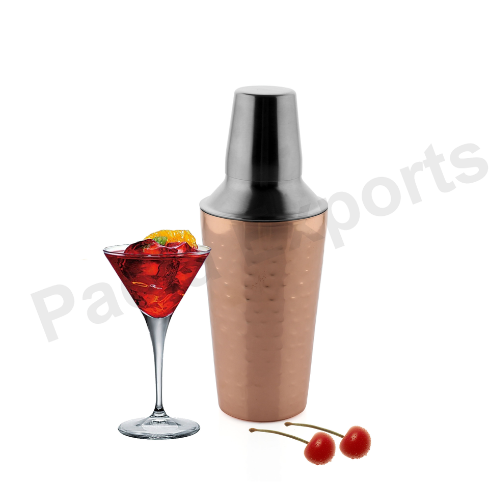 Shaker à cocktails portable couleur cuivre martelé en acier inoxydable durable, numérique intelligent, moderne, qualité commerciale, 5 pièces