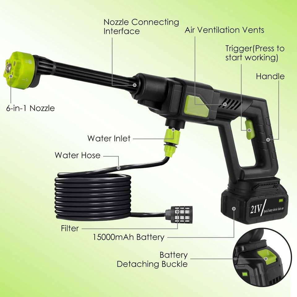 Nettoyeur haute pression sans fil portable 435 PSI, pulvérisateur d'eau électrique, buse 6-en-1, nettoyeur de voiture, nettoyeurs haute pression