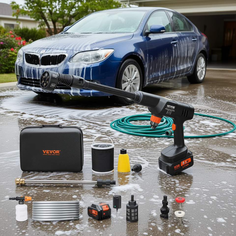 Nettoyeur haute pression portable sans fil Vevor 652 Psi 1.0 Gpm, fonctionne sur batterie 20V, pour le nettoyage des voitures, de la maison et des sols.