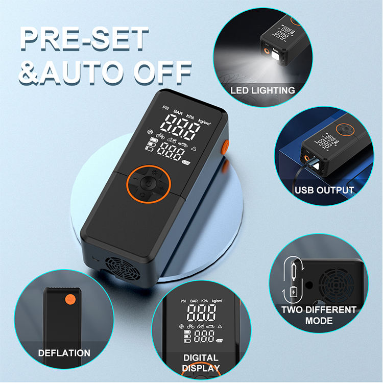 Lumière De secours, Indicateur de puissance, Moniteur de Pression des pneus, Portable, Arrêt automatique, Gonfler rapidementFonction