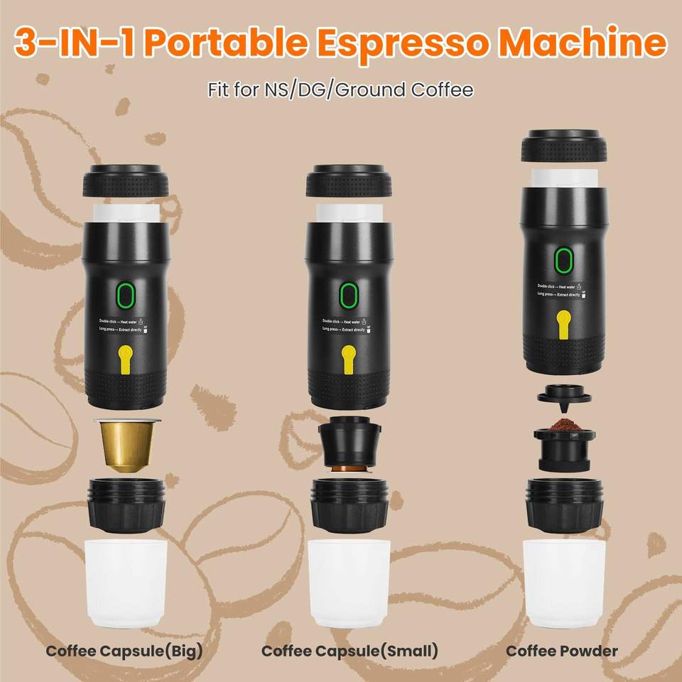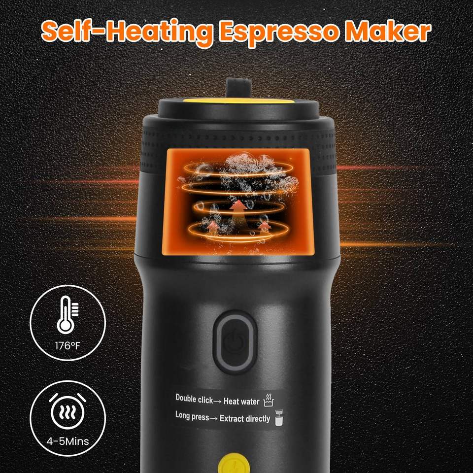 Machine à expresso électrique portable sans fil auto-chauffante pour voiture, avec fonction anti-brûlure à sec, 1 machine à café pour café moulu
