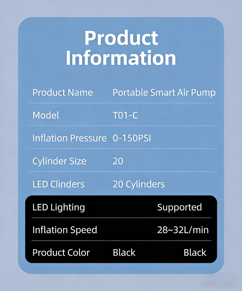 Gonfler rapidement, Portable, Moniteur de Pression des pneus, Lumière De secours, Indicateur de puissanceFonction
