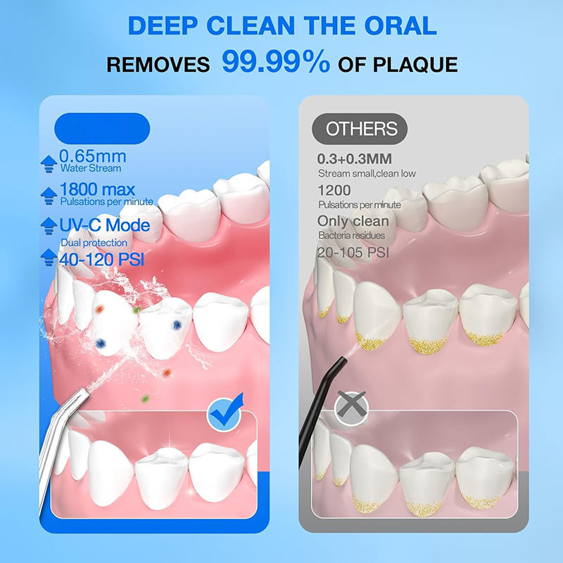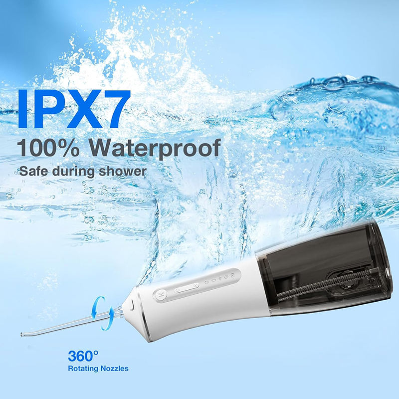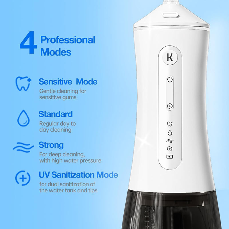 Hydropulseur buccal électrique portable sans fil étanche avec réservoir de 300 ml, 3 modes et lumière UVC