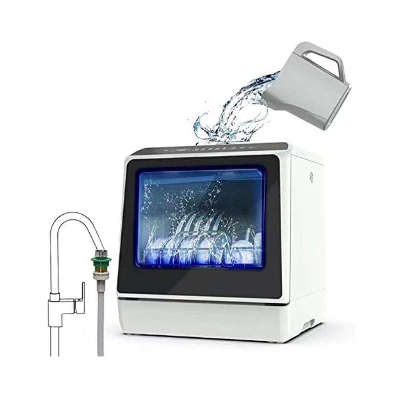 Lave-vaisselle portable de comptoir avec 5 programmes, réservoir d'eau de 3 tasses, panier pour fruits/légumes, haute température, séchage à l'air