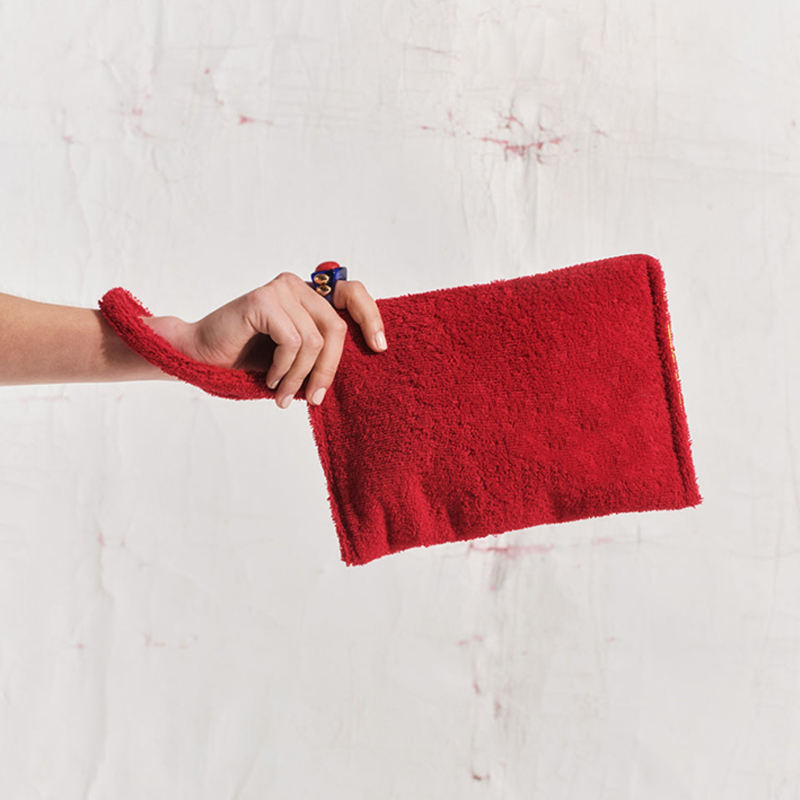 Portable Logo Personnalisé 100% Coton Éponge Tissu Éponge Maquillage Sac Serviette Vierge Matériel Cosmétique Sac avec Poignée Souple