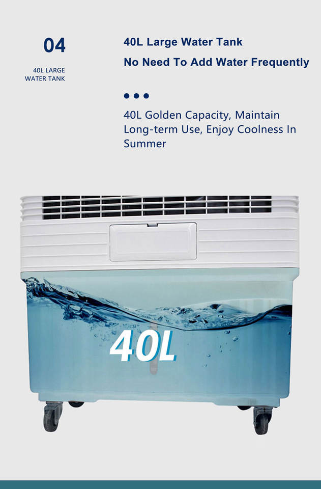 Refroidisseur d'air portable 40L à énergie solaire et batterie avec commande mécanique à 6 vitesses pour les pièces et l'extérieur