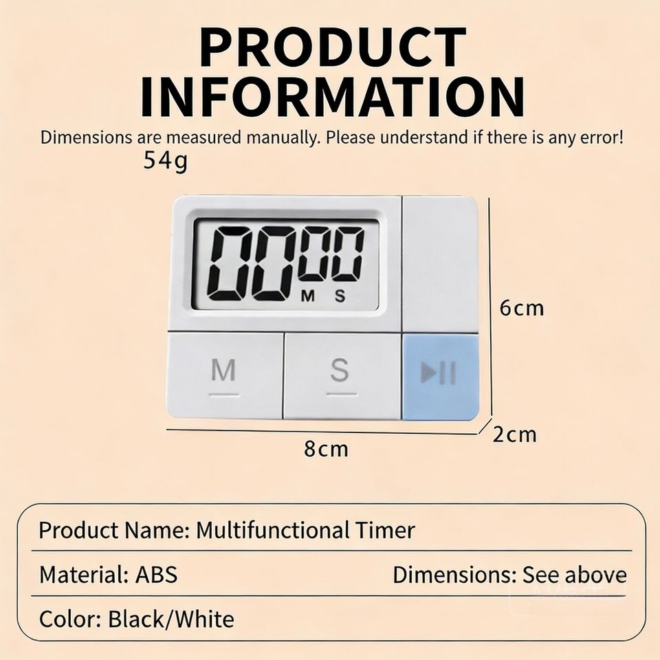 Minuterie de cuisine numérique portable avec écran LCD, compte à rebours, alarme sonore, support, pour la cuisine, la douche, l'étude, fonctionne sur piles, chronomètre en plastique
