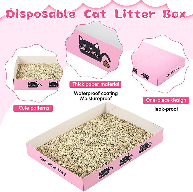 Portable jetable chat litière pliable papier Kitty plateau léger boîte en carton étanche jetable litière pour chats