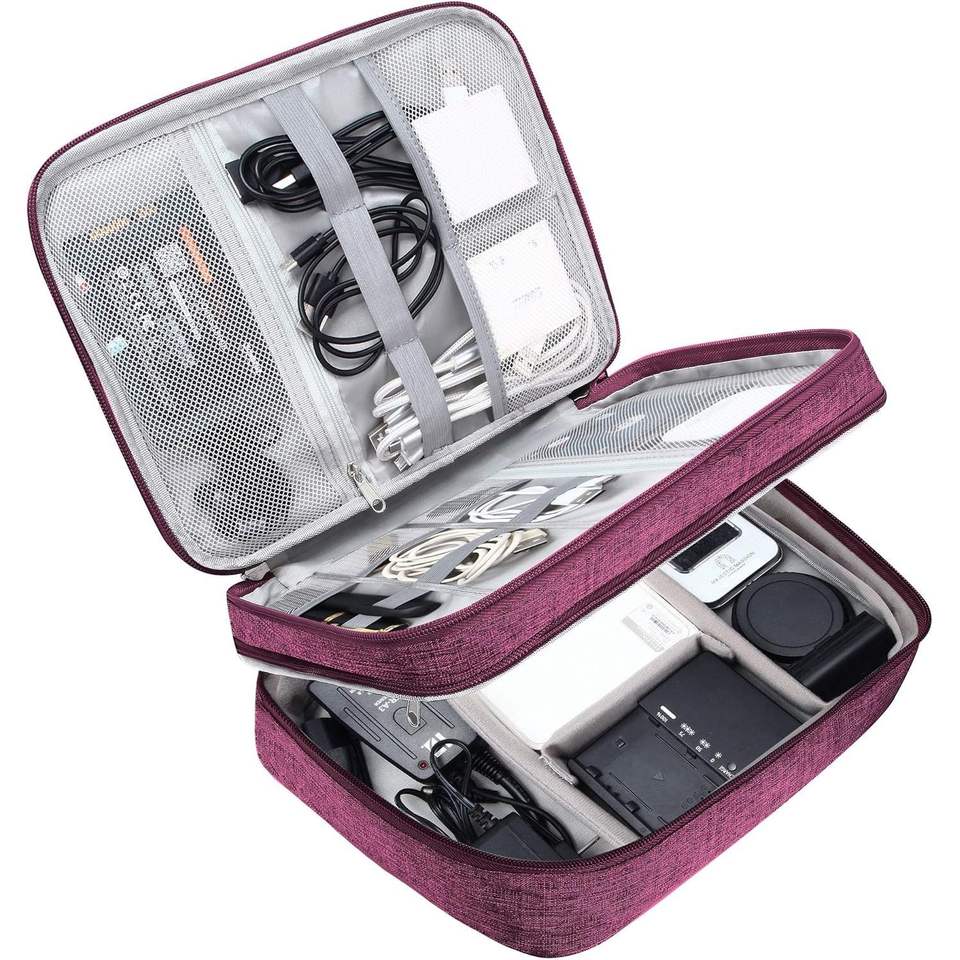 Étui de rangement portable double couche pour appareils électroniques, sac de voyage étanche pour accessoires de câbles, rangement spécial pour câbles et cordons