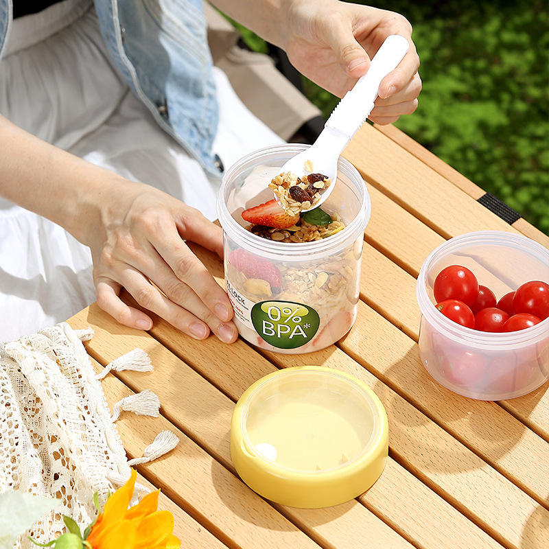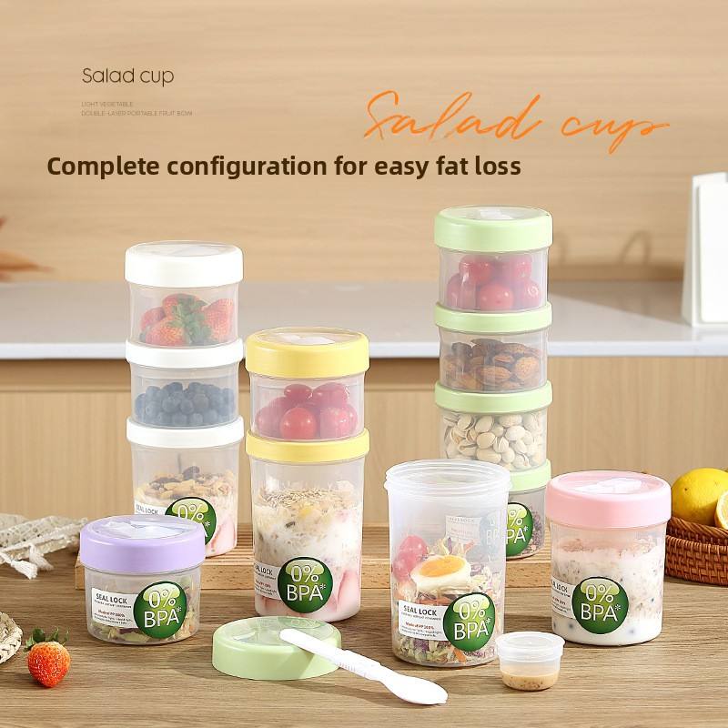 Boîte à lunch portable double couche pour salade petit déjeuner tasse de fruits lait et flocons d'avoine à emporter tasse de fromage-micro-ondable et chauffable