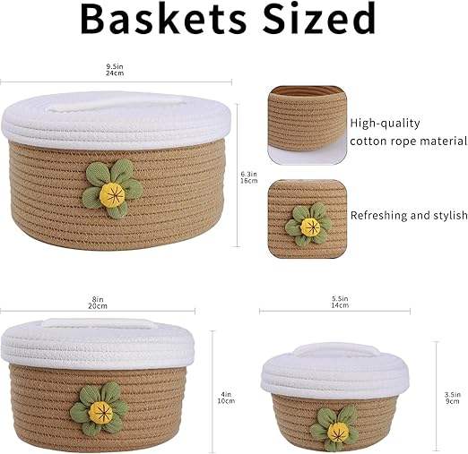 Panier de rangement portable en corde de coton écologique et moderne avec couvercle, organisateur tressé décoratif pour vêtements et livres, idéal pour le salon
