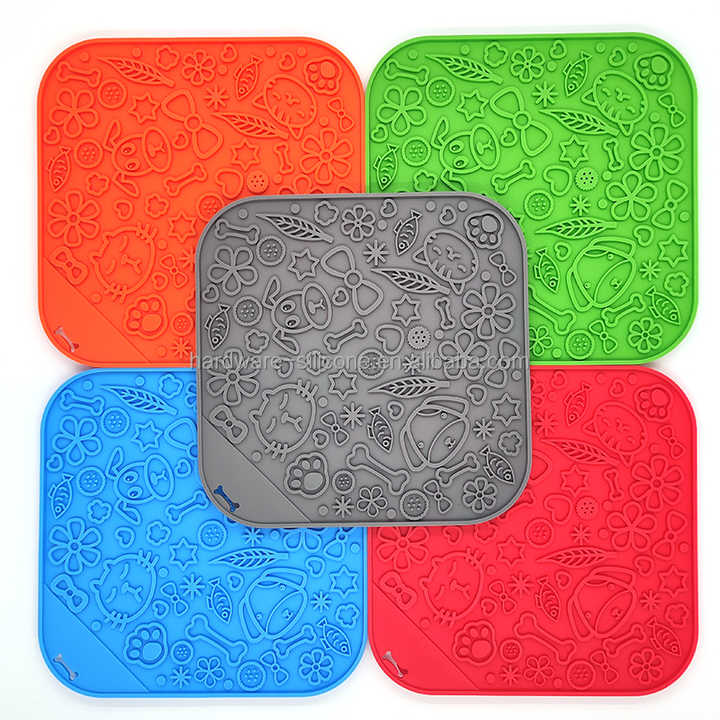 Tapis à lécher en silicone imperméable et sans BPA, portable, écologique, élégant, imprimé animaux, carré de 20 cm, pour une alimentation lente des chiens