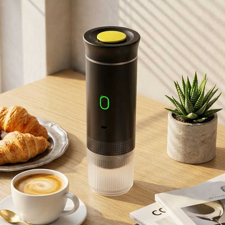 Machine à café à capsules électrique portable avec batterie rechargeable par USB, facile à utiliser, compatible avec les dosettes de café, design compact, légère et idéale pour les voyages