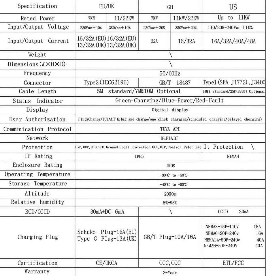 Type 1/2 /GBT/CCS/Personnalisé pour vous