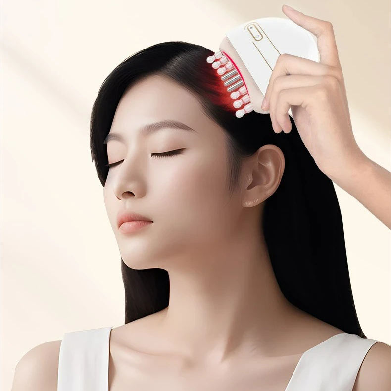 Peigne de massage électrique portable en jade naturel pour le soin du cuir chevelu avec fonction de vibration pour détendre les méridiens du cuir chevelu