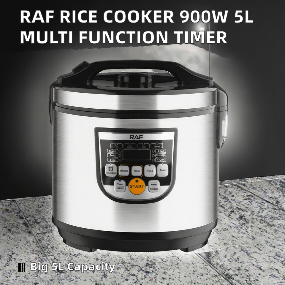 Cuisinière à riz électrique portable en acier inoxydable 900W Haute puissance 5L Options de cuisson multifonctions Minuterie 24 heures Tasse à mesurer pour camping-car