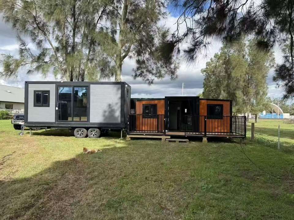 Maison Conteneur Extensible Portable, Tiny Home de Luxe sur Roues pour Hôtel et Site de Glamping