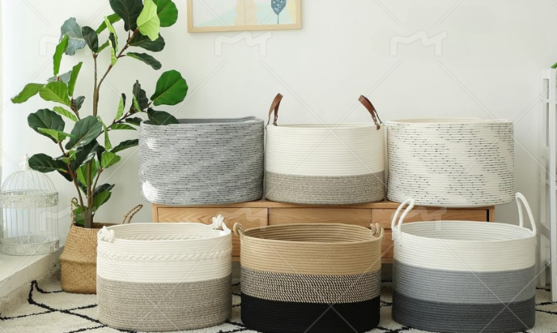 Product name:Hand Woven Cotton Rope Folding Storage Basket