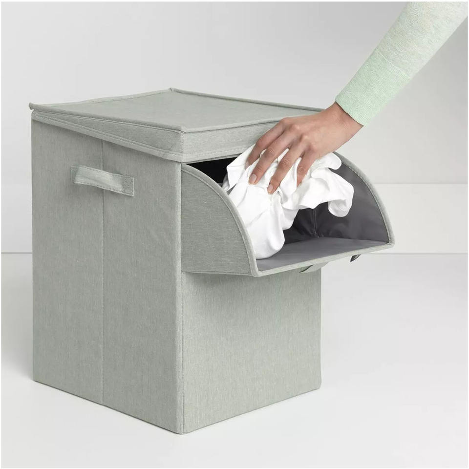 Boîte portable en tissu Boîte organisateur de placard pliable Boîte à linge empilable Panier à linge avec rabat et couvercle à ouverture frontale