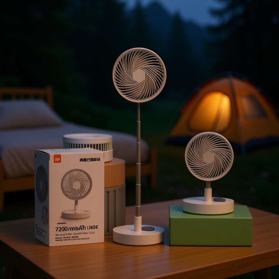Ventilateur portable avec batterie rechargeable 7200mAh, pliable, sur pied, pour voyage, camping, chambre, usage domestique