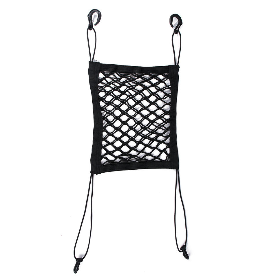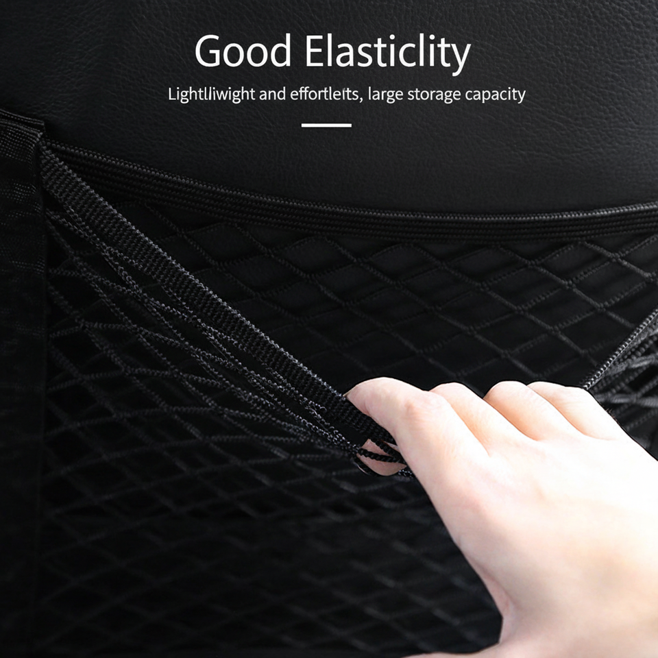 Organisateur de voiture pliable portable avec filet de rangement en maille et poches, fermeture à ceinture, barrière pour chien entre les sièges des voitures