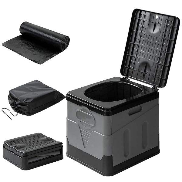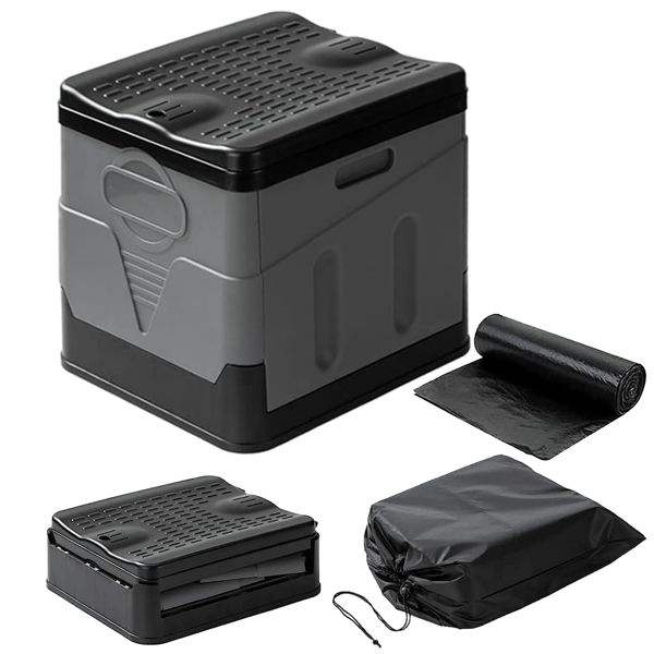 Toilette d'urgence portable et pliable avec sac de transport, couvercle et sacs poubelles pour le camping, la voiture, l'intérieur/l'extérieur – Fournitures de bain et de toilettes