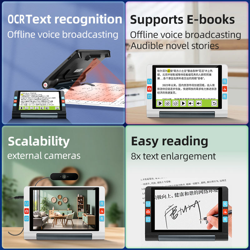 Loupe vidéo électronique à poignée pliable portable 5 7 8 pouces aides à la basse vision pour malvoyants en plastique durable