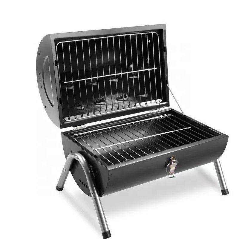 Barbecue portable pliable de luxe moderne double face de haute qualité en métal revêtu de poudre avec grille de cuisson chromée et cheminée