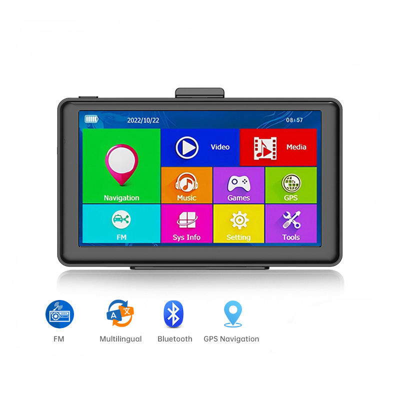 MP3/MP4, Visionneuse photo, Radio Tuner, Écran tactile, Chargeur de Voiture, 3D CARTE, Caméra de recul, Guidage vocal, Planification de route, Aide à l'inversion, Multimédia Soutenu, Avertissement de vitesse, Microphone Intégré, Amplificateur, 8GB, FMT,Ebook,Free map, BT-EnabledFonction