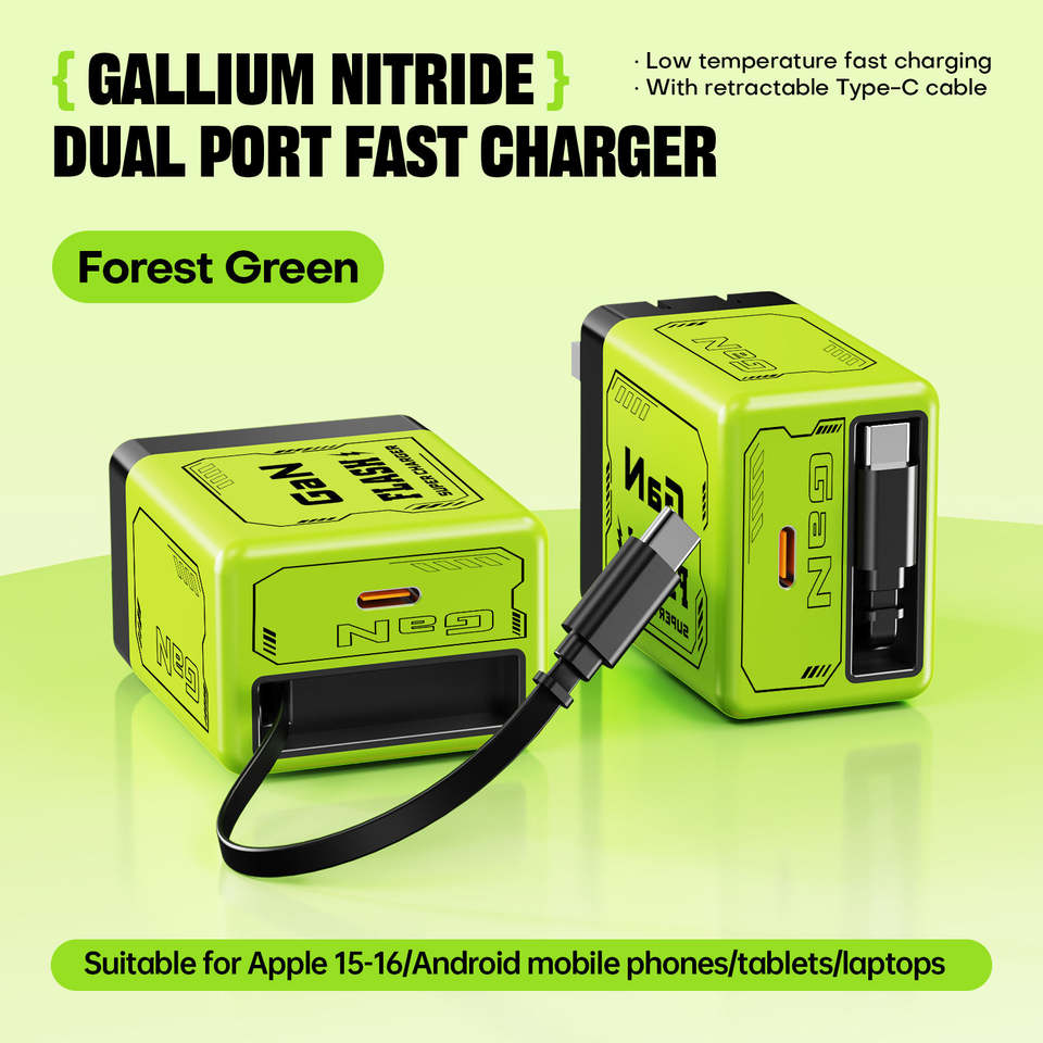 Portable GaN 35W USB C Chargeur Rapide Smart Pliable US Plug Construit en Extensible Type C Câble Téléphone pour iPhone Samsung MacBook
