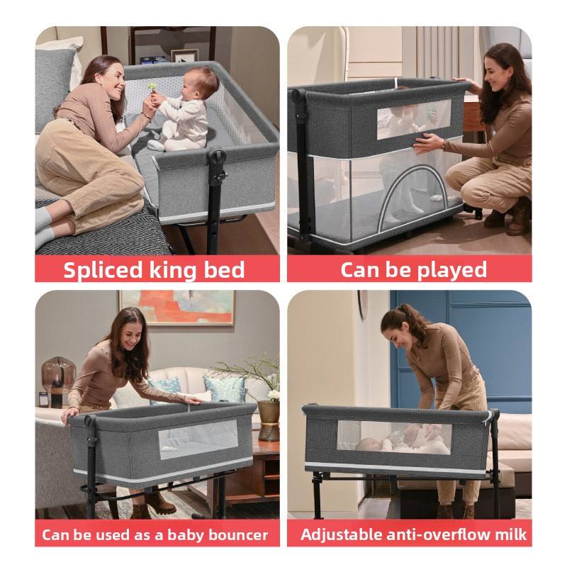 Lit de jeu portable pliable et connectable, grand lit bébé, berceau à bascule, table à langer pour nouveau-nés, modèle C966, avec moustiquaire à roulettes
