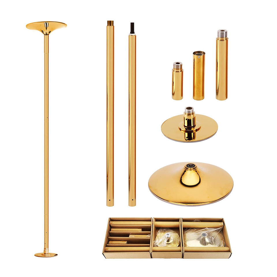 Barre de Pole Dance Rotative Portable Renforcée Dorée pour Usage à Domicile