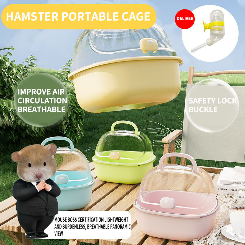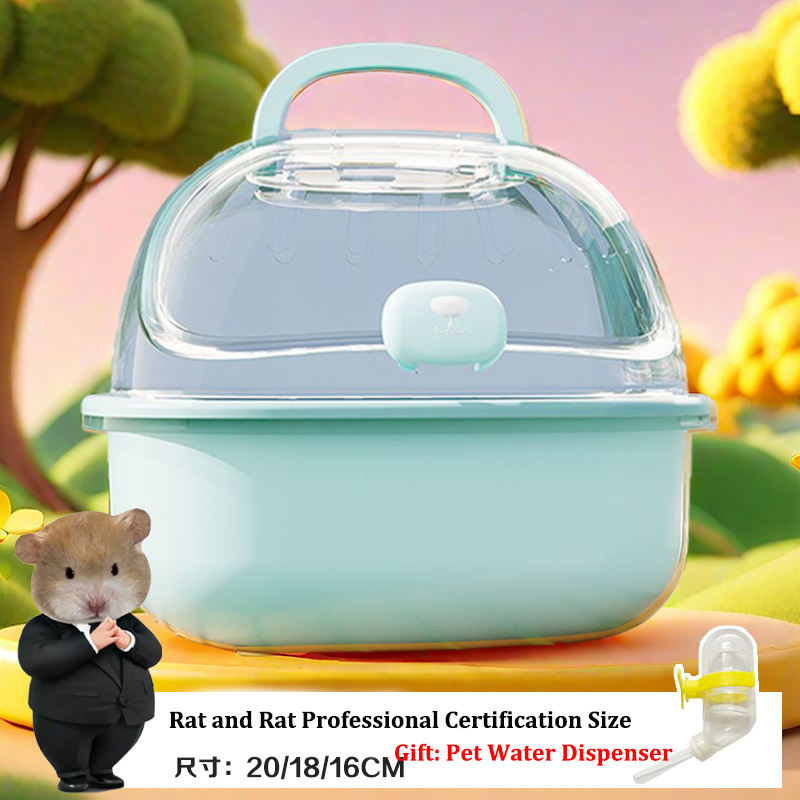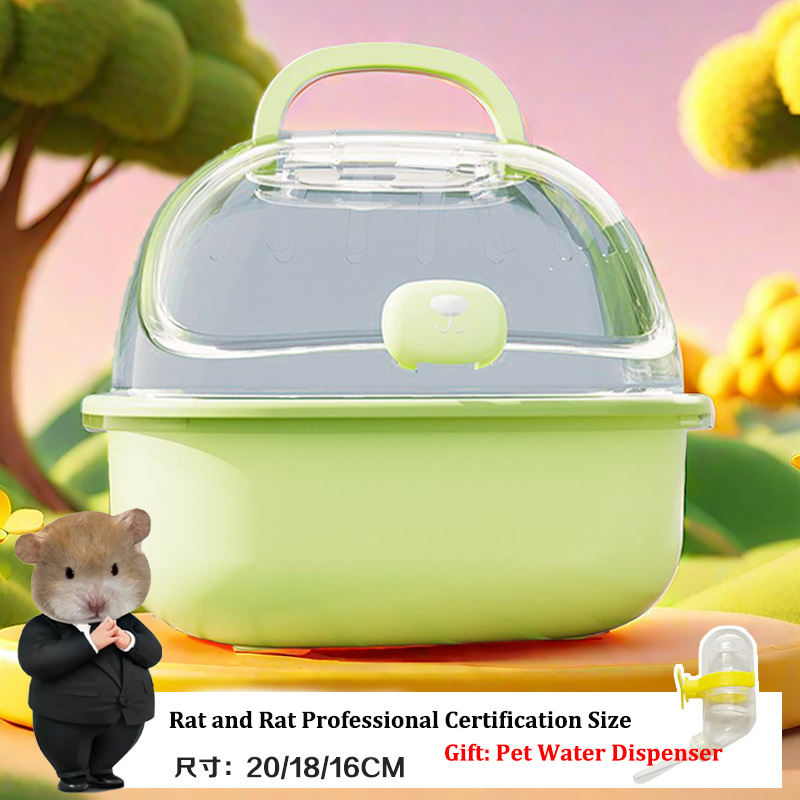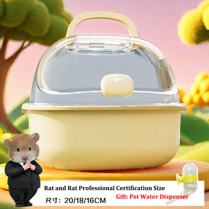 Cage de transport portable pour hamster avec fournitures pour petits animaux, fermeture à bouton, plateau en plastique et bac à litière