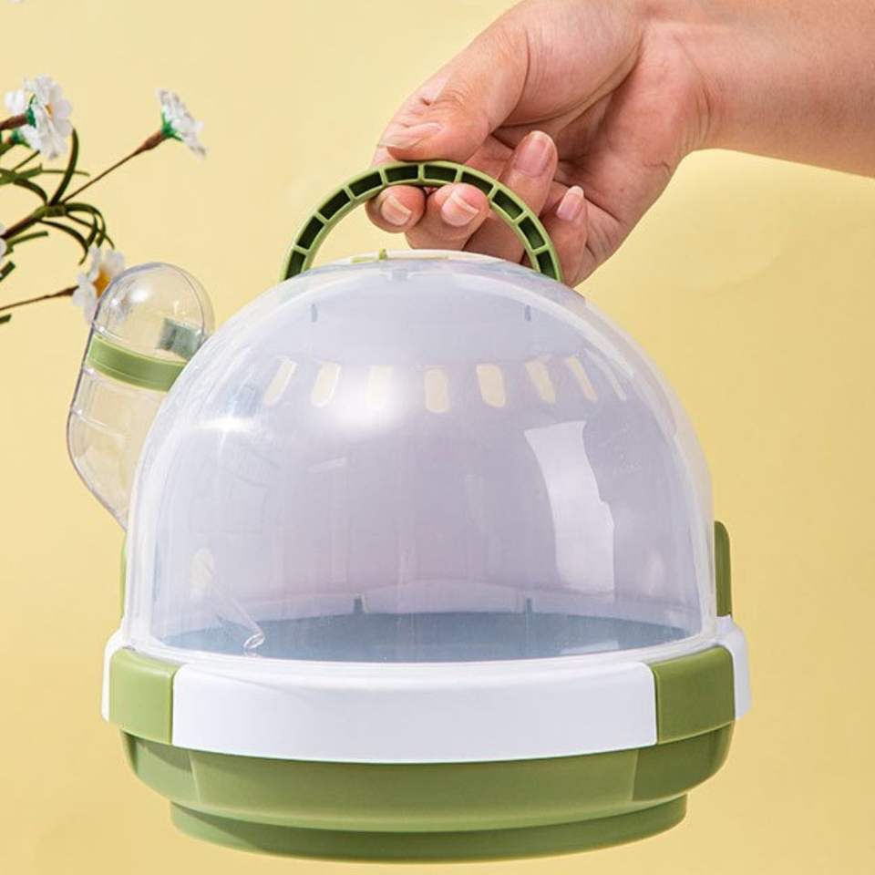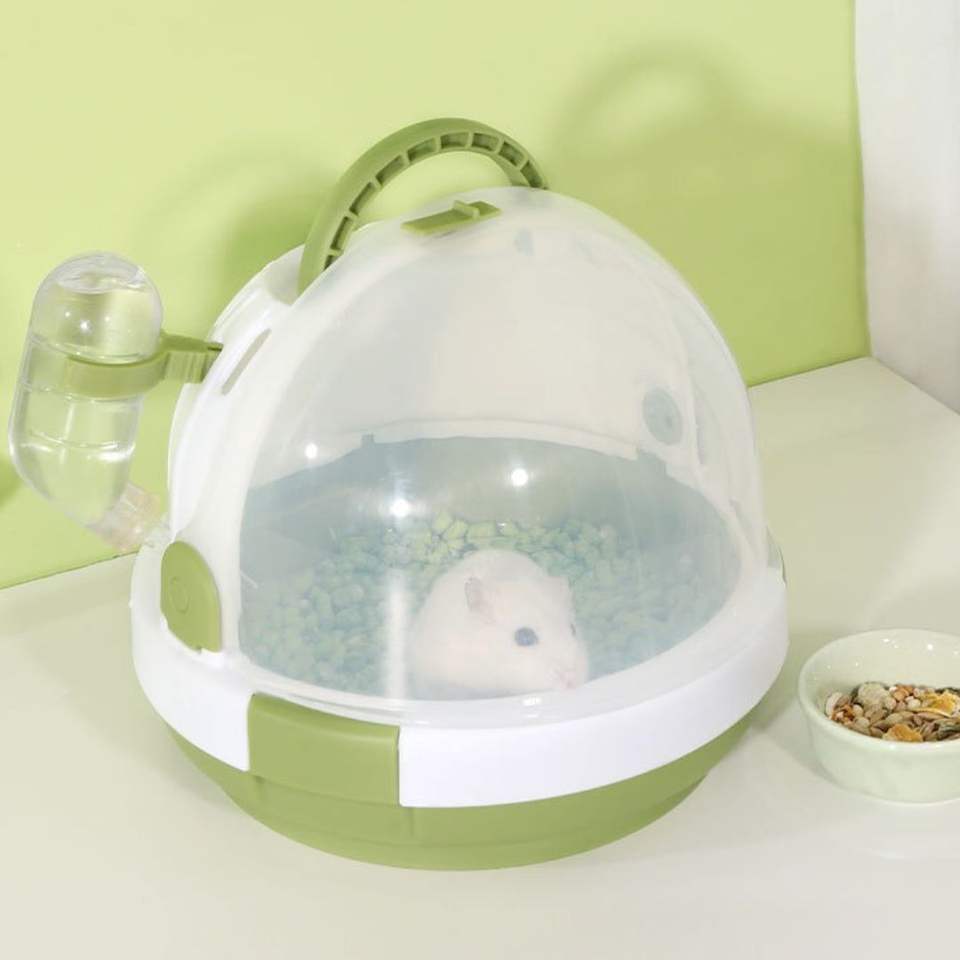Cage à hamster portable semi-transparente ronde, transporteur de voyage pour cobaye, matériau PP, poignée, bouteille d'eau, transport