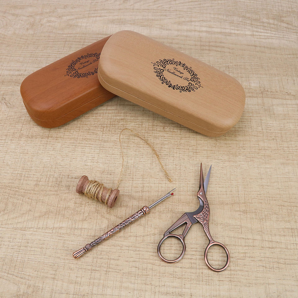 Nom du produit:Boîte à lunettes vintage, ensemble d'aiguilles et de fil, outils et fournitures de couture