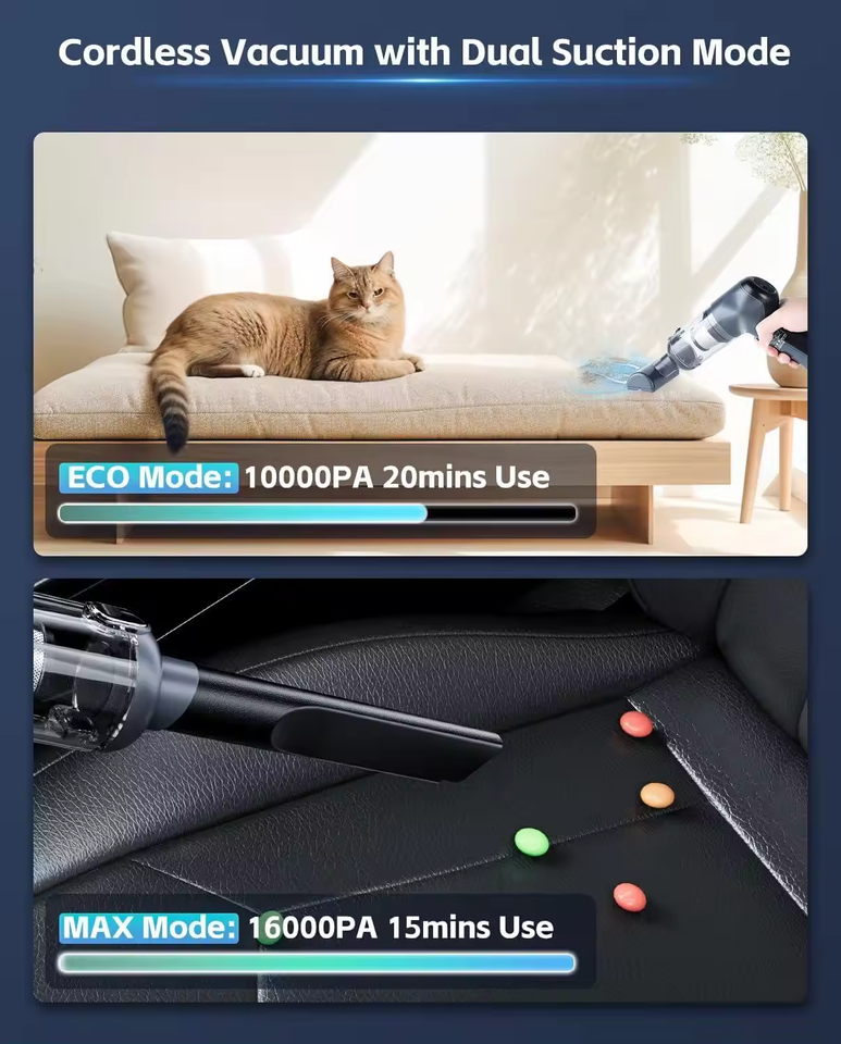 Aspirateur de voiture portable sans fil 2 en 1, aspiration et soufflage