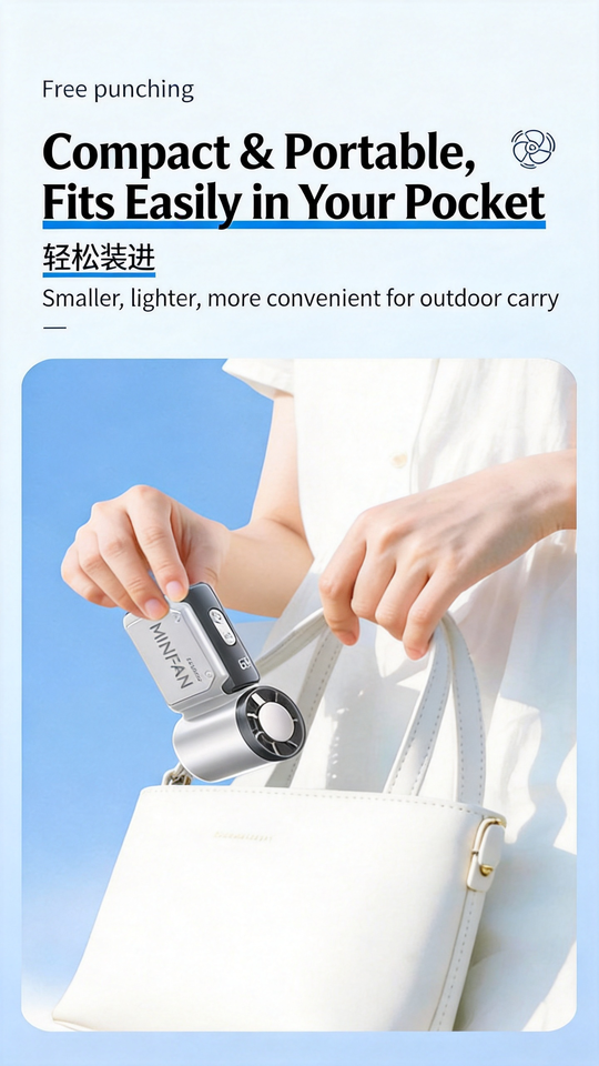 Ventilateur électrique portable - Rechargeable par USB, 4000 mAh, mini-refroidisseur d'air réglable, compact et silencieux pour les voyages et la maison